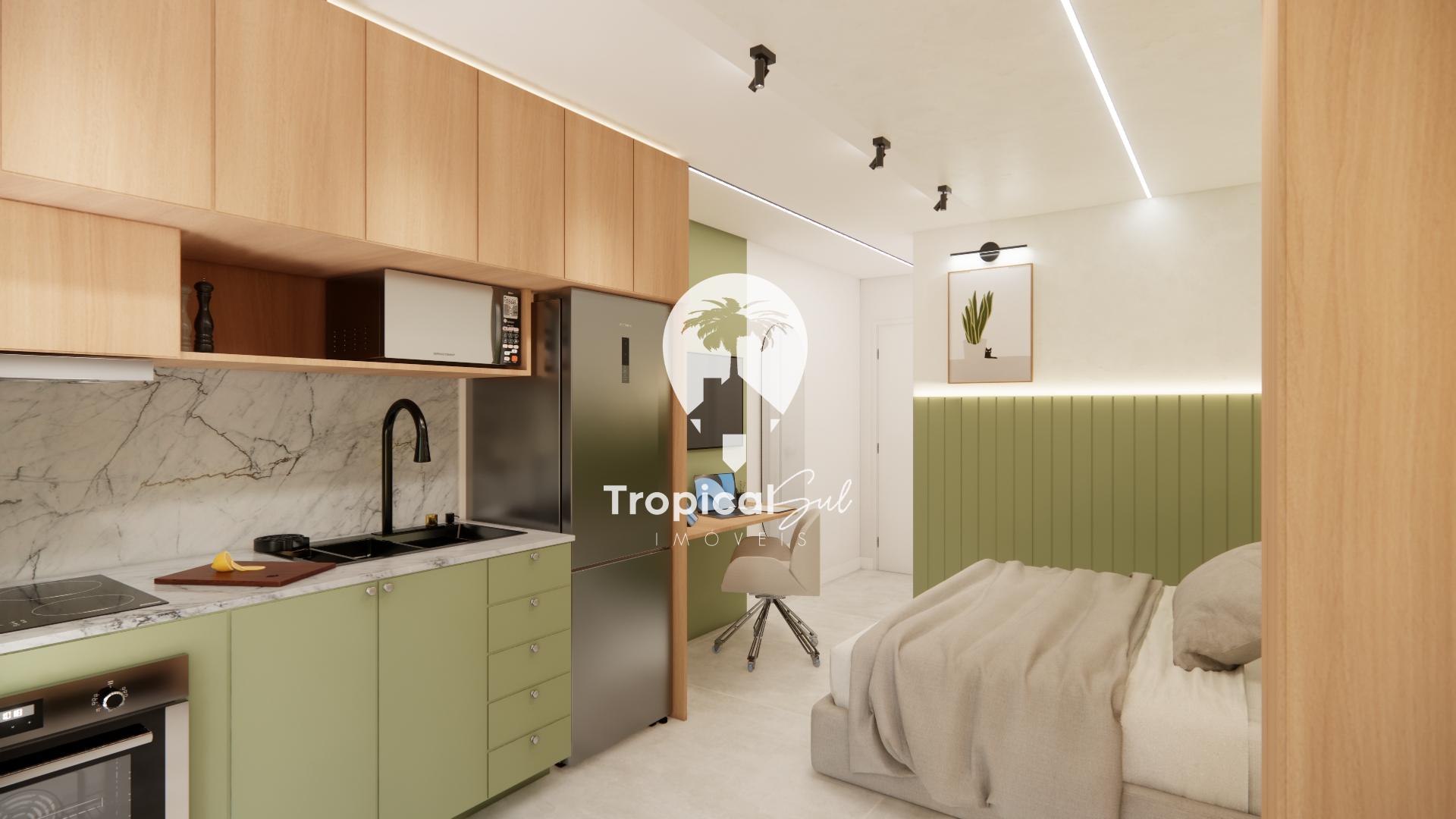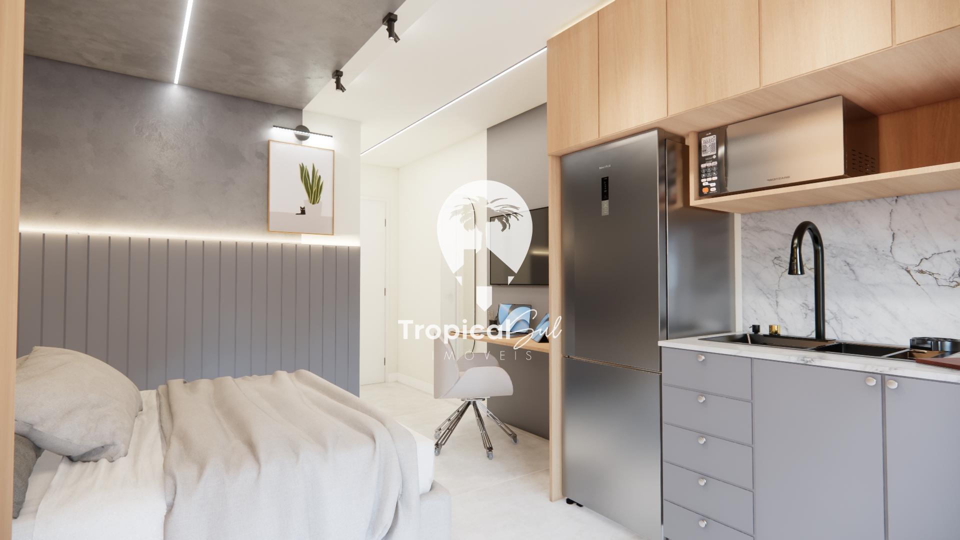 Studios com sacada e churrasqueira, fechadura digital para facilidade de locação short stay, elevador e todas as unidades com garagem interna e portão automatizado