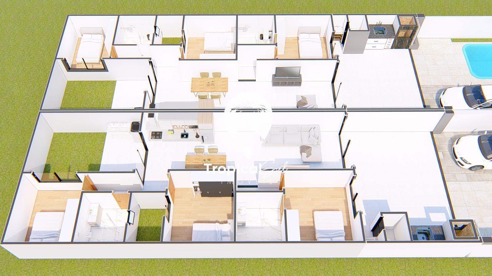 Casa com 126,00 m² de área construÃda, com terreno medindo 6,00 x 32,00 totalizando 192,00m².